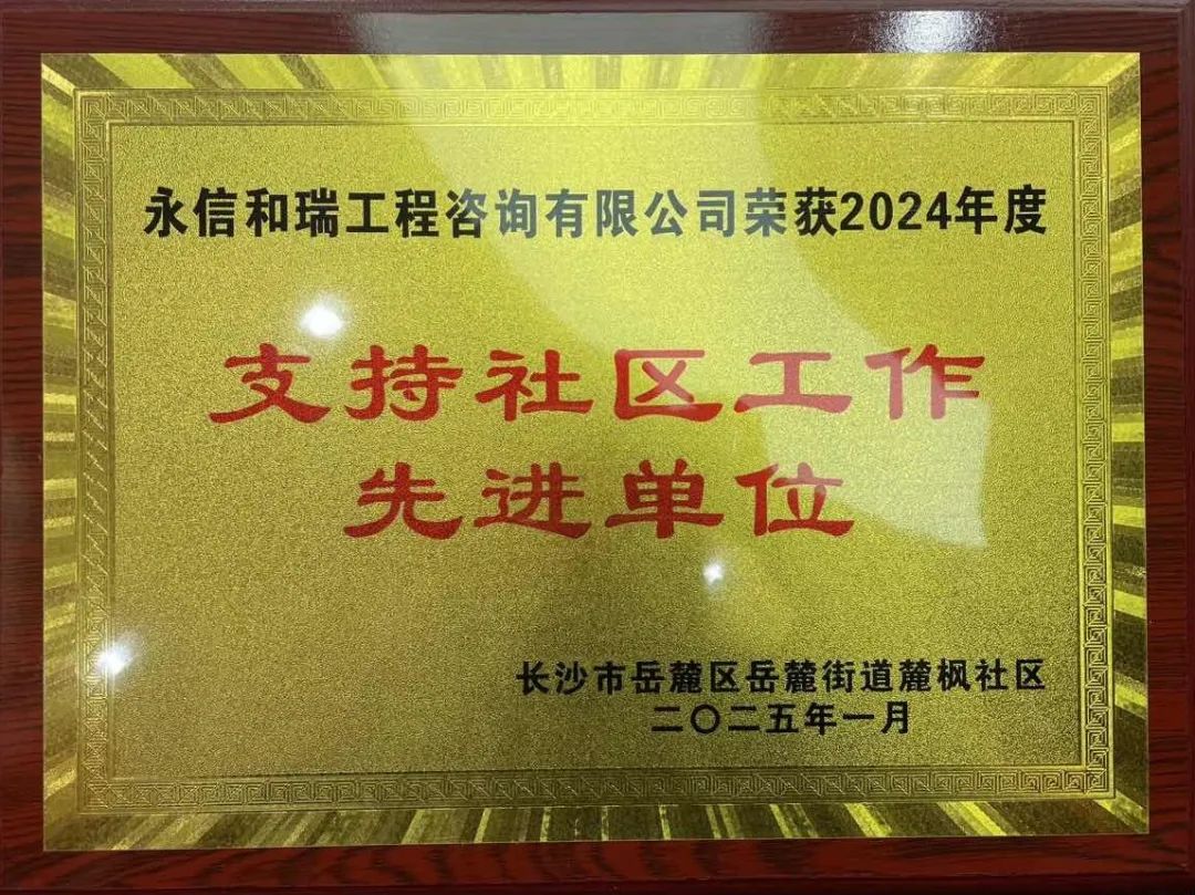 近日,岳麓街道麓楓社區2024年度先進集體和優秀個人評選結果揭曉,我司榮獲“支持社區工作先進單位”榮譽稱號。
