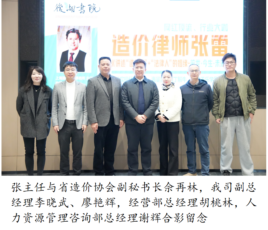 在法治中國建設(shè)與行業(yè)高質(zhì)量發(fā)展的雙輪驅(qū)動(dòng)下,造價(jià)與法律的融合已然成為業(yè)內(nèi)剛需。這不僅體現(xiàn)在具體業(yè)務(wù)層面,更將重塑工程造價(jià)的價(jià)值定位,使其從傳統(tǒng)咨詢服務(wù)向高質(zhì)量戰(zhàn)略智庫轉(zhuǎn)型。3月9日,上海源勤律師事務(wù)所主任張雷律師蒞臨我司開展專題培訓(xùn),深度解析以法律思維指導(dǎo)造價(jià)管理的必要性及其具體應(yīng)用,以期助力從業(yè)人員精準(zhǔn)把握行業(yè)政策動(dòng)向、提升法律風(fēng)險(xiǎn)防控能力。本次講座由永信和瑞與后湖書院主辦,省造價(jià)協(xié)會(huì)副秘書長(zhǎng)佘再林作為嘉賓出席講座。我司副總經(jīng)理李曉武、廖艷輝,經(jīng)營部總經(jīng)理胡桃林,人力資源管理咨詢部總經(jīng)理謝輝帶領(lǐng)造價(jià)業(yè)務(wù)板塊全體人員參與交流。